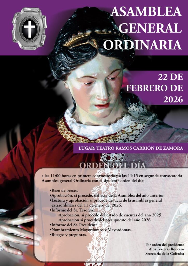 Asamblea General. SalĂłn Actos Seminario de San Atilano. A las 16:15 horas.