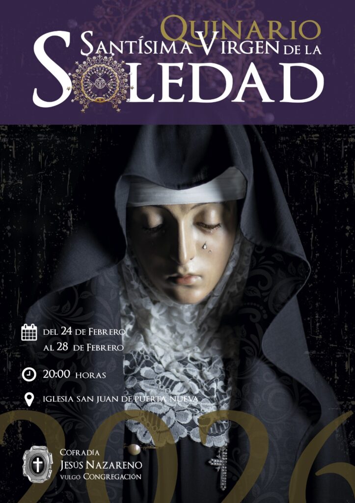 đDel martes 24 al sĂĄbado 28. JesĂşs Nazareno. Quinario a la SantĂsima Virgen de la Soledad. Iglesia de San Juan. A las.20:00 horas.