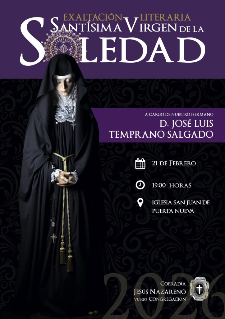 đJesĂşs Nazareno. IX ExaltaciĂłn Literaria a la SantĂsima Virgen de la Soledad por JosĂŠ Luis Temprano Salgado. Iglesia de San Juan. A las 19:00 horas