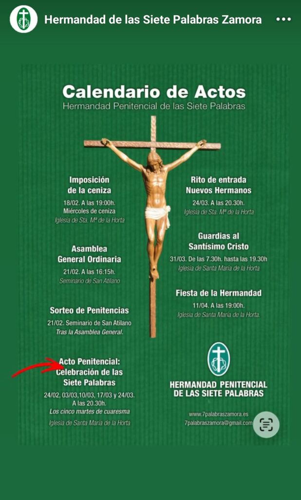 📍MARTES DE CUARESMA. 3, 10, 17 y 24 de marzo. Hermandad Penitencial de las Siete Palabras. Celebración de las Siete Palabras de Jesús en la Cruz. Iglesia Santa María la Horta. A las 20:30 horas.