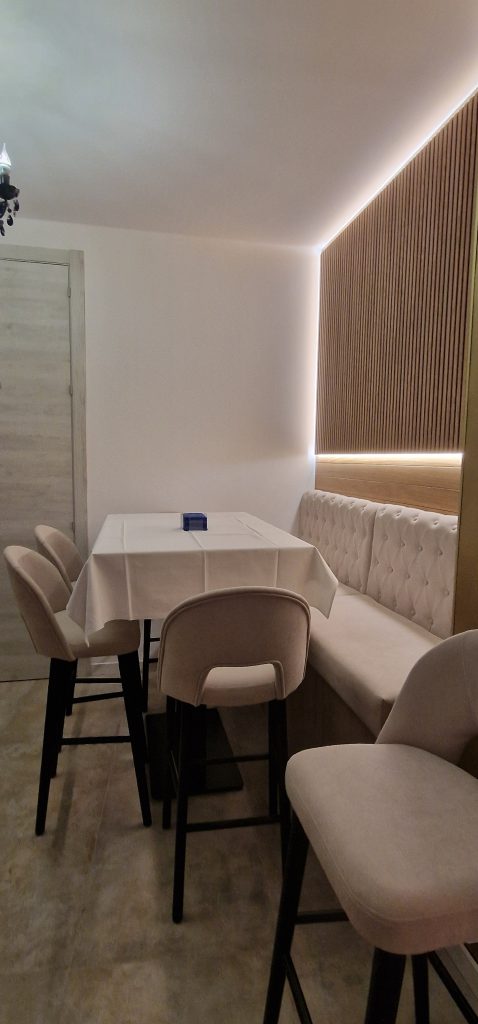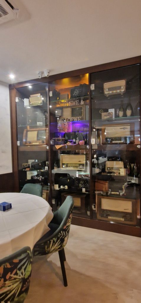 Este expositor será objeto de un reportaje de la propia firma y es uno de los alicientes del local, que cuenta con otro expositor de botellas de licor y numerosos detalles que marcan la elegancia y buen gusto que presiden el diseño del restaurante, que cuenta con un aforo máximo de 65 personas.