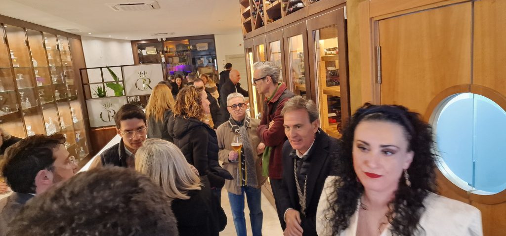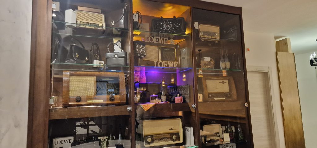 Los asistentes fueron recibidos con un copioso vino español y un cortador de jamón ibérico mientras descubrían la exquisita decoración de Cava Reina, con un espectacular expositor de Loewe con aparatos de radio vintage, bolsos, pañuelos y otros objetos de colección de la casa.