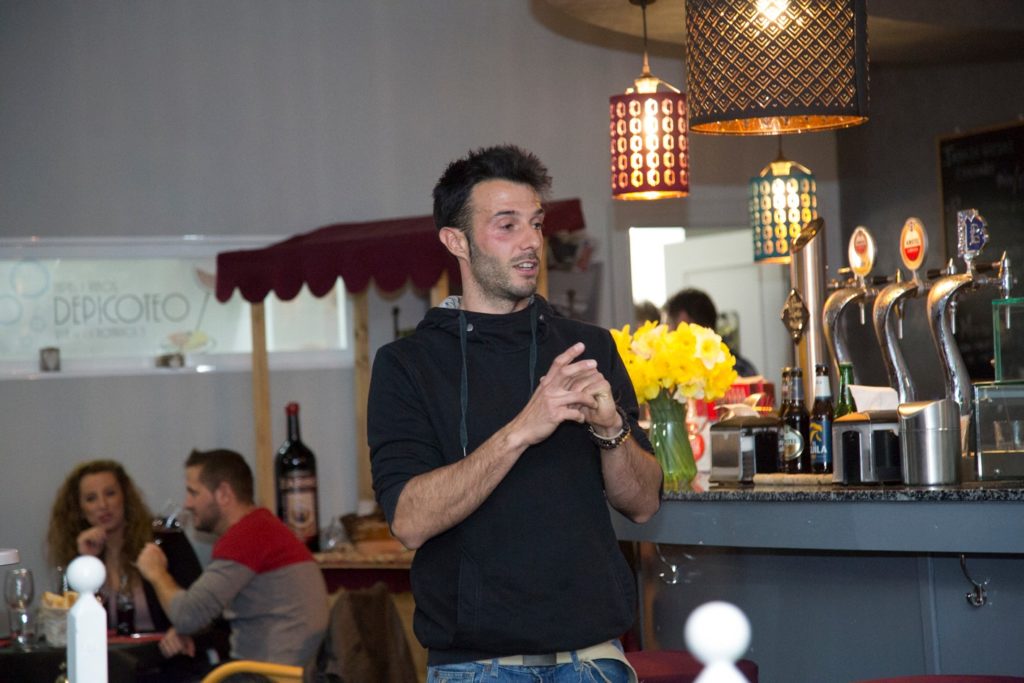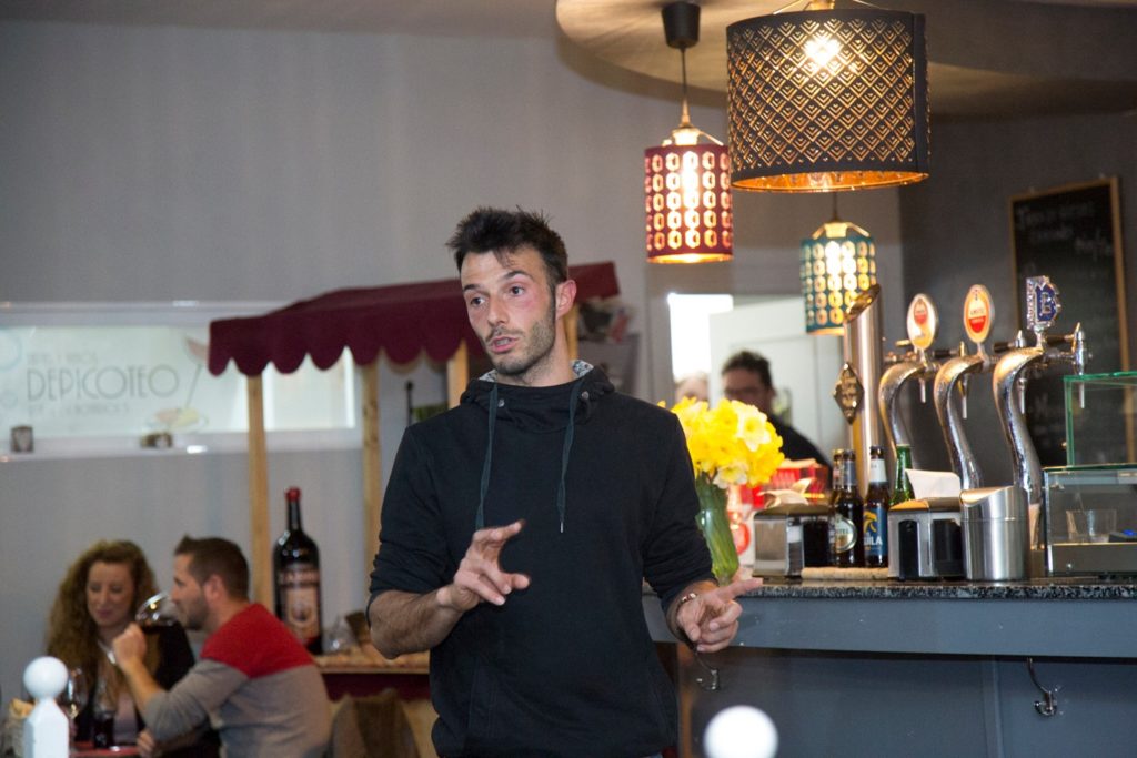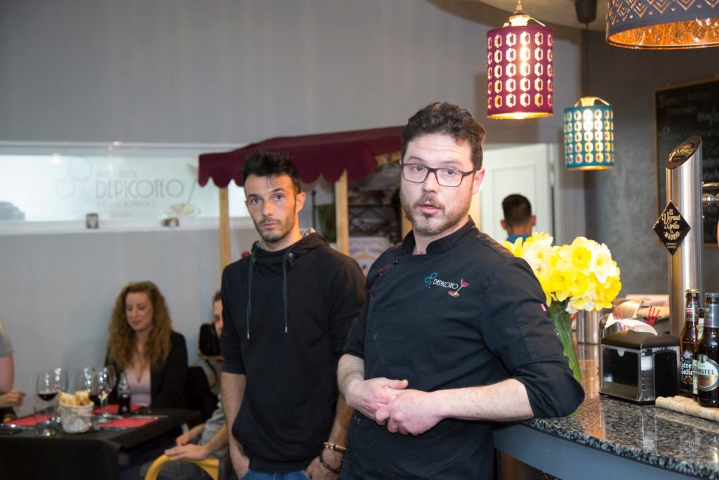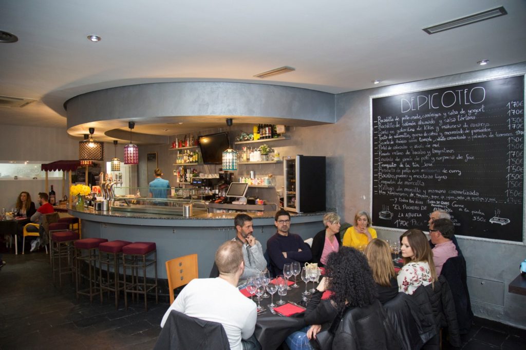 Con todas sus plazas ocupadas, DePicoteo (Rúa de los Francos, 2) celebraba ayer una de sus catas-maridaje, en esta ocasión con cuatro extraordinarias tapas maridadas con otros tantos vinos de la bodega zamorana Alvar de Dios, de El Pego, dos tintos pertenecientes a la D.O Toro, con uvas procedentes de viñas de 20 años y viñedos viejos de 80 años y una proporción de 90 por ciento de Tinta de Toro (Tempranillo) y un 10 por ciento de Garnacha;  y otros dos –clarete y blanco- de la IGP Vinos de Castilla y León, elaborados con distintas variedades de pequeñas parcelas de Villadepera y elaborados al modo tradicional, con vendimia natural, sin despalillar y sin filtrar.