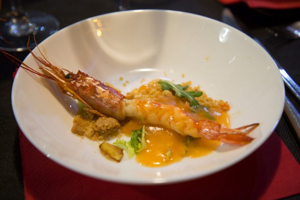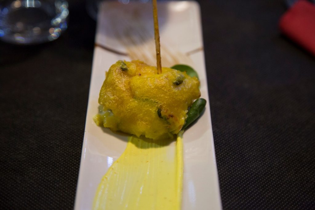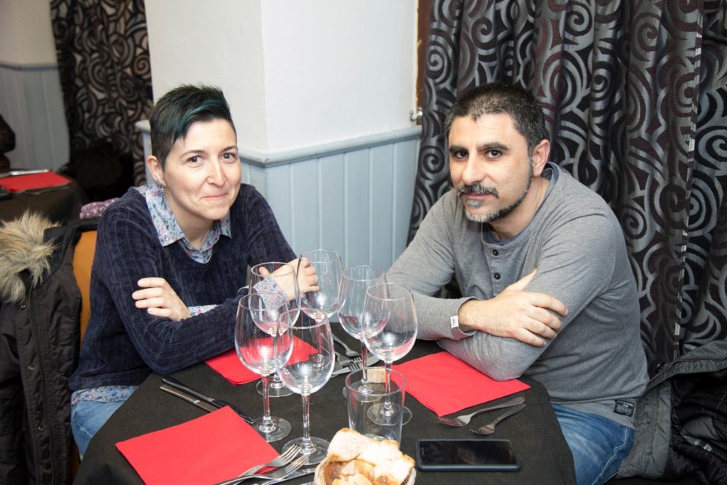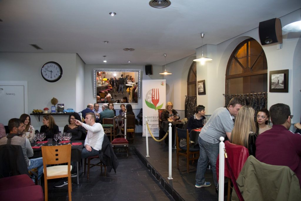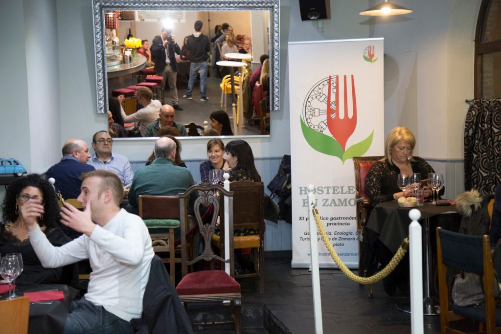 El matrimonio formado por Reyes y Adolfo sorprendían de nuevo a sus comensales con cuatro tapas de mucha altura, todo un muestrario de su buen hacer en la cocina. Así, en la jornada los asistentes pudieron degustar un gambón al horno con crumble de zanahora y chips de alcachofa, para continuar con un delicioso ‘Figón de bacalao’,  una porción de bacalao rebozado en una lamina de calabacín con crema de queso, acompañado con unas pinceladas de mayonesa de curry, que supuso una delicada explosión de sabor en la boca. La tercera propuesta era un timbal de patata y pulpo con mostaza ligera y ajo arriero, en el que destacaba la suave textura de la patata y el toque de la mostaza, para finalizar con una costilla o “presa” de ternera asada y salsa agriculce, sobre una base de cocina tradicional y con mayor contundencia, que pusieron muy difícil a los comensales decantarse por una de ellas,