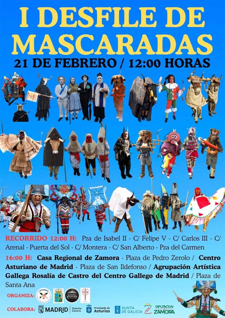 Madrid se transformará el sábado 21 de febrero con el sonido de cencerros, el abrir y cerrar de tenazas y la presencia de seres fantásticos y demonios. La Casa de Zamora en Madrid se prepara para una jornada histórica con su participación en el I Desfile de Mascaradas del Distrito Centro mostrando en el corazón de España una de las tradiciones que son santo y seña del patrimonio cultural y etnográfico zamorano como son las mascaradas de invierno.