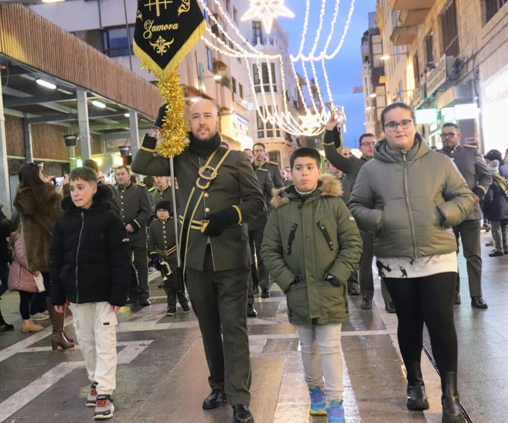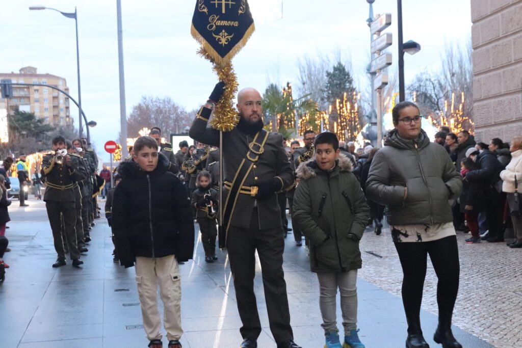 La ilusión de los niños que esperan a Sus Majestades Los Reyes Magos se ha visto incrementada esta tarde con la llegada del Cartero Real -más bien una guapísima cartera-, que ha recorrido las calles acompañado por la Banda de Cornetas y Tambores Ciudad de Zamora para recoger las cartas de los niños y entregárselas a Melchor, Gaspar y Baltasar.