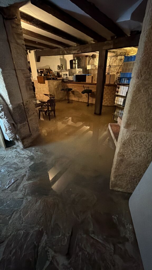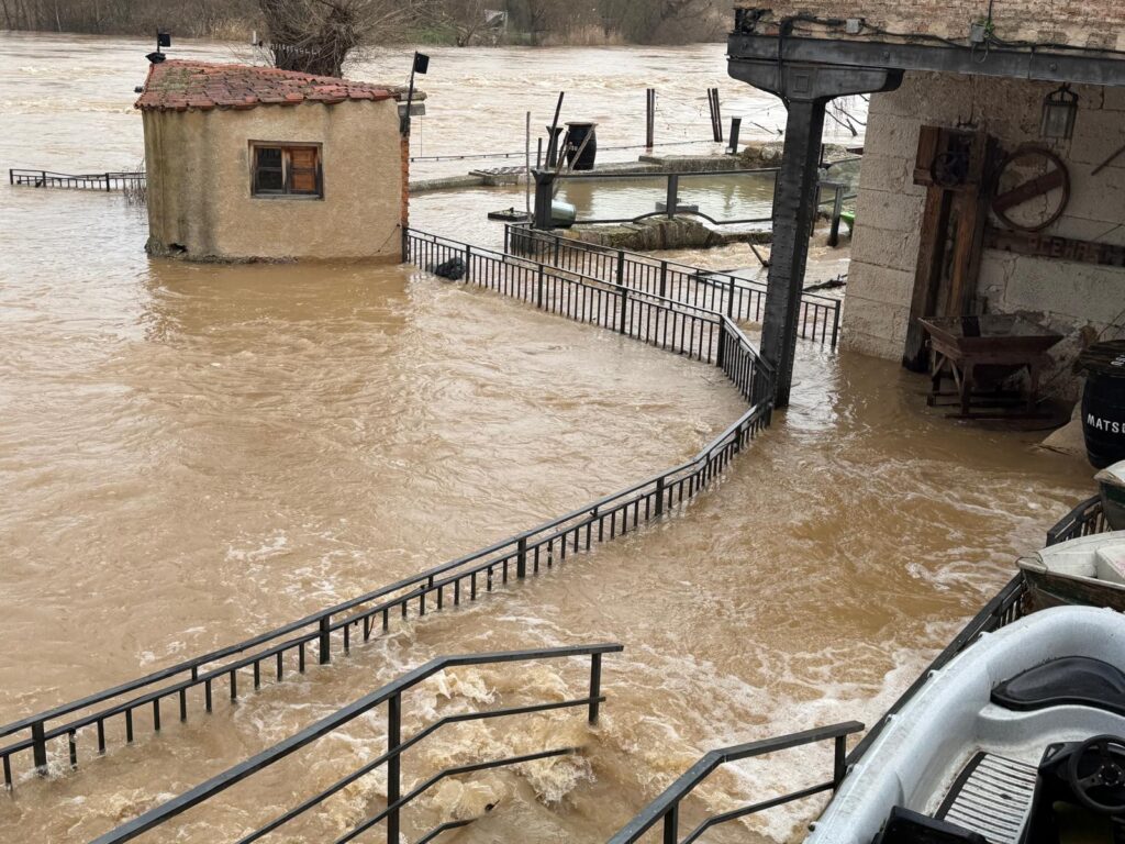 Como explica el dueño del restaurante, Javier, la terraza inferior aparece completamente inundada, mientras el agua ha empezado a colarse y a inundar la bodega. Se da la circunstancia de que, tras un breve parón que efectúa en invierno, el establecimiento hostelero se preparaba para reabrir sus puertas al público, sin que de momento vaya a ser posible.