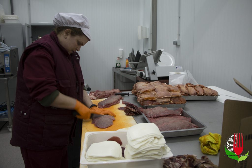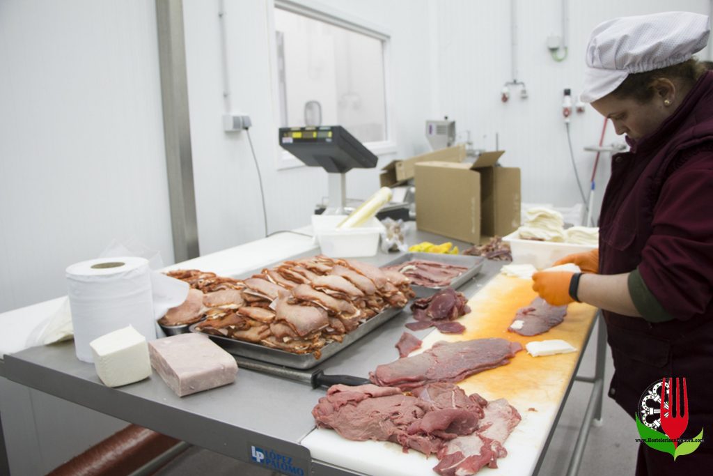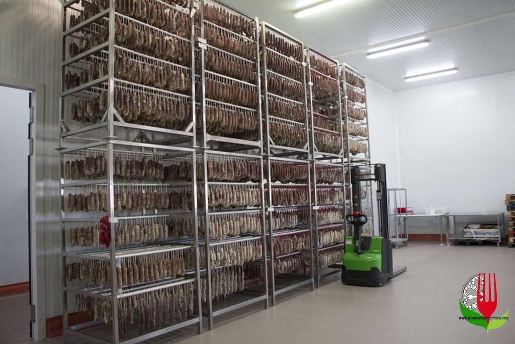Acceder a la fábrica es entrar en un espacio donde reina el sugerente olor a adobo que proviene del lomo, la panceta o los costillares recién adobados; ese olor ya supone de por sí una tentación para los sentidos. Si uno cierra los ojos, huele a casa, a matanza tradicional, familiar, a fórmulas de toda la vida.