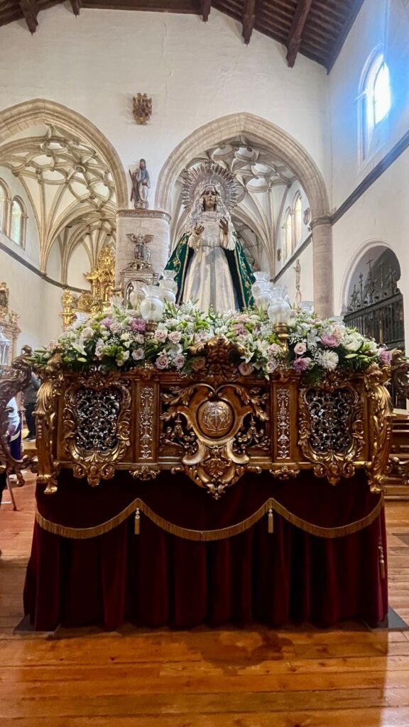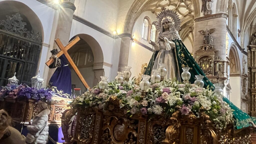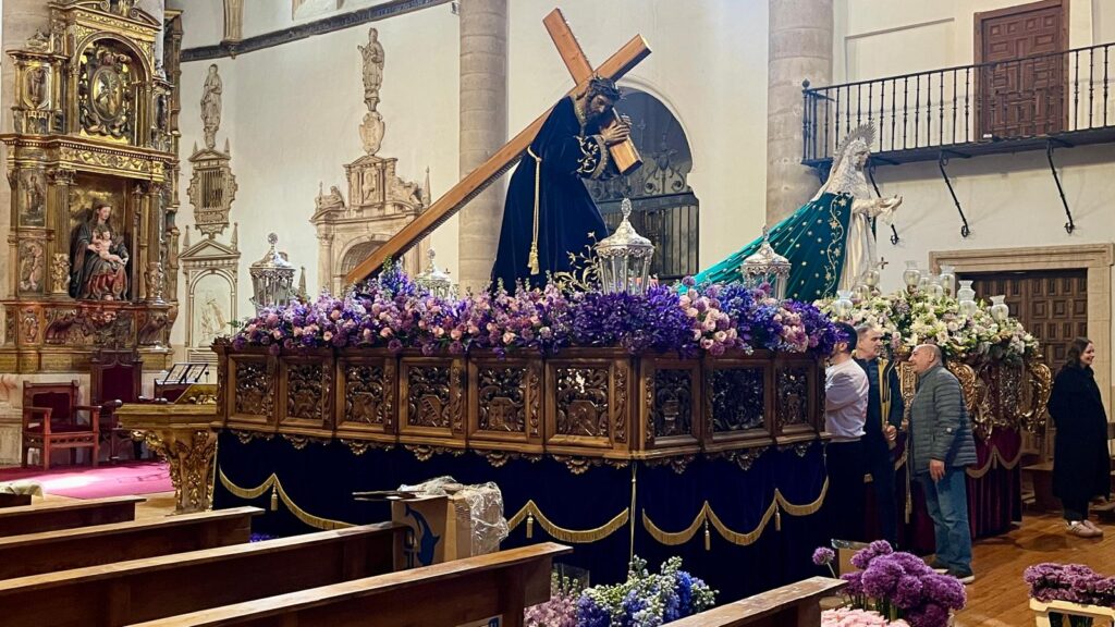 La iglesia de San Andrés (la del Seminario) era esta mañana un ir y venir. Camareros, floristas, cotanero; alguna escalera por el medio y también cofrades y devotos del Nazareno de San Frontis y la Virgen de la Esperanza acudían a visitarlos en la que fue su punto de partida y llegada durante décadas.