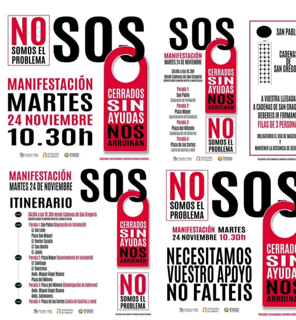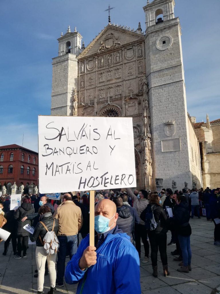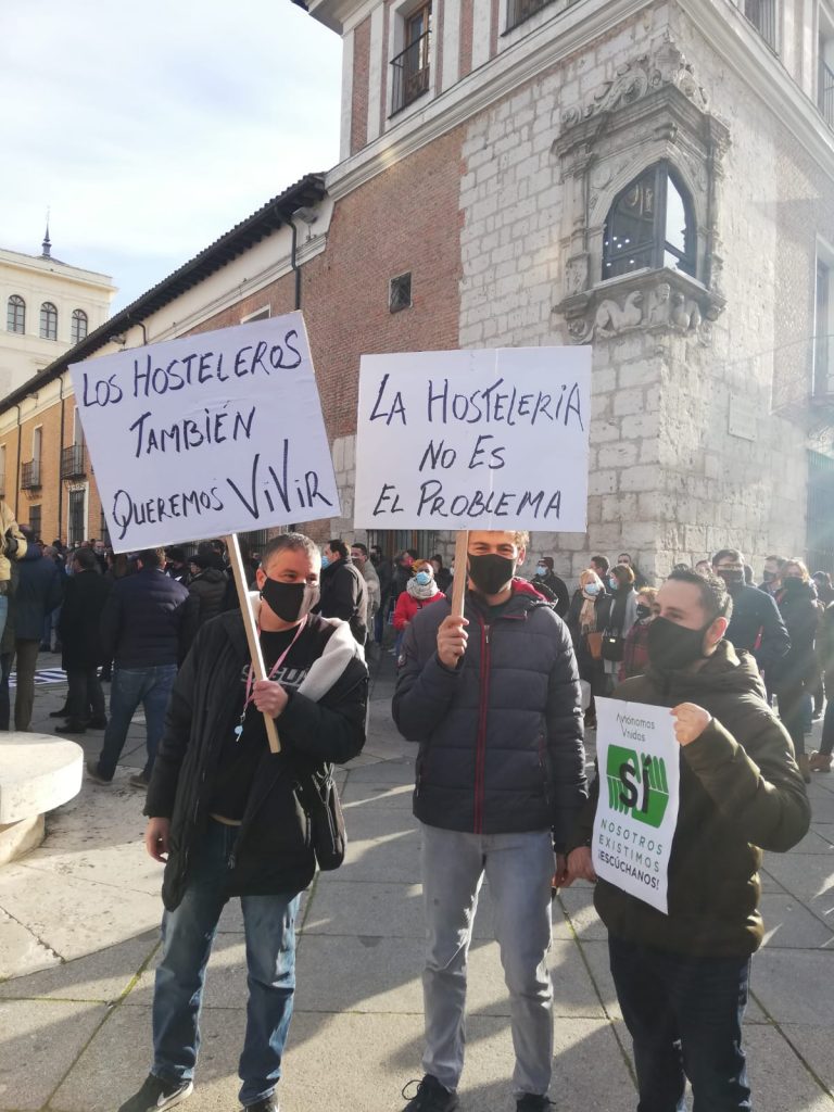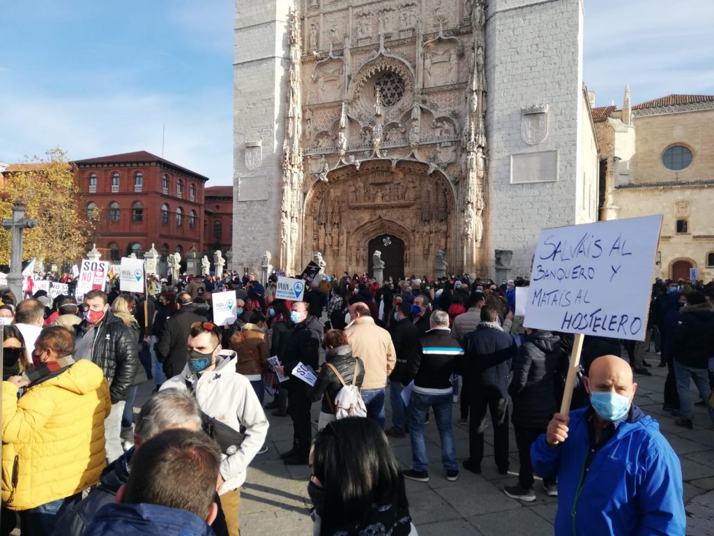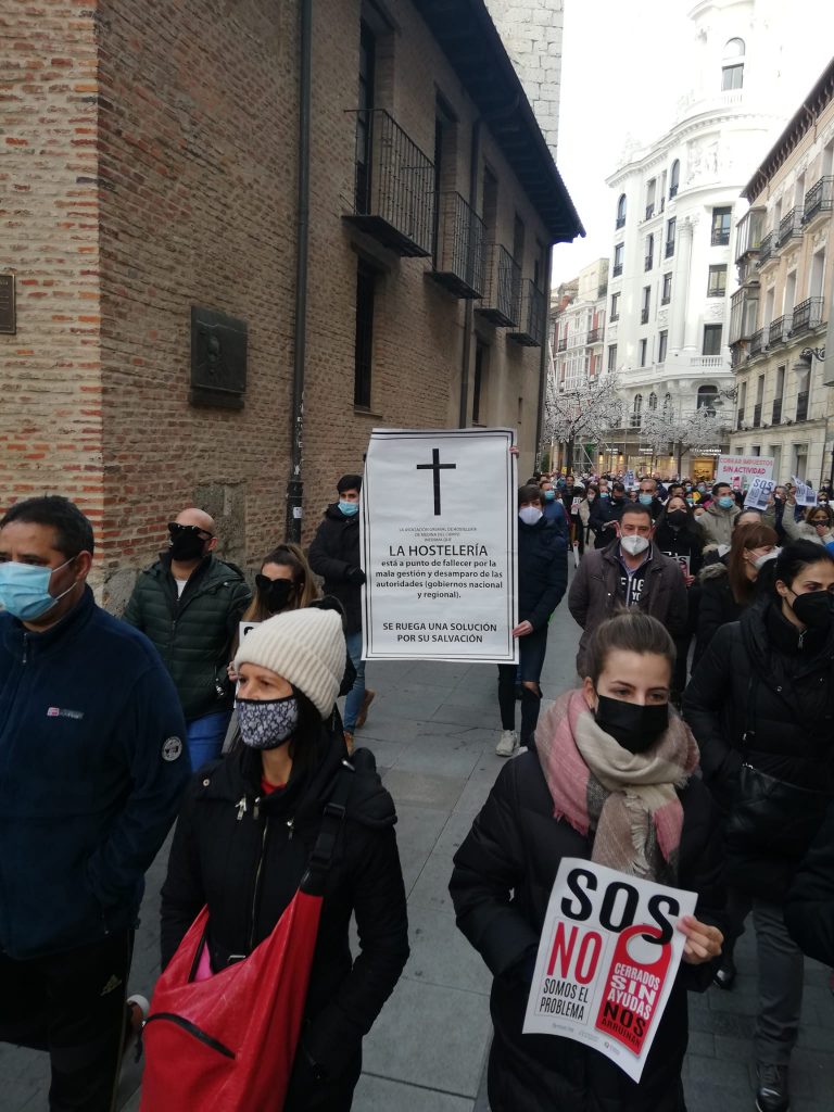 La manifestación, organizada por la patronal de la hostelería en Valladolid, ha recorrido las sedes de todas las administraciones: Diputación Provincial, Ayuntamiento, Subdelegación del Gobierno y Cortes de Castilla y León.