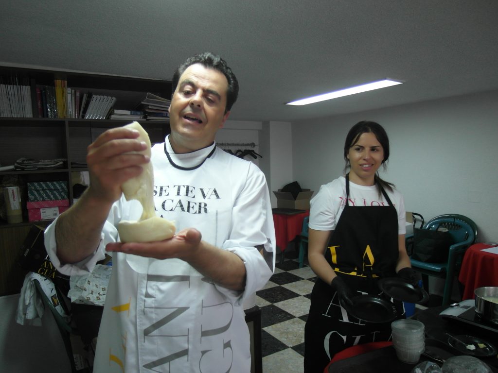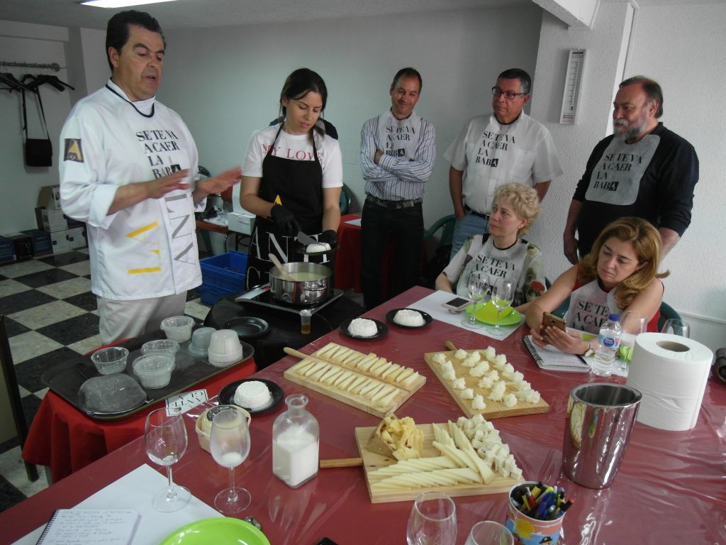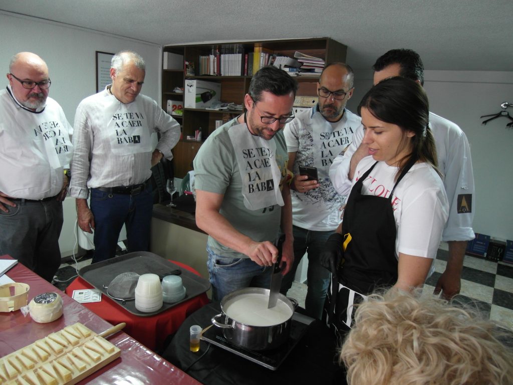 Mientras Sara preparaba los ingredientes necesarios para la elaboración de un queso fresco, Fernando explicaba con profesionalidad y con gran claridad: el valor de la leche, tipo de cuajo, tratamiento térmico de la leche, diferentes tipos y cortes del queso.