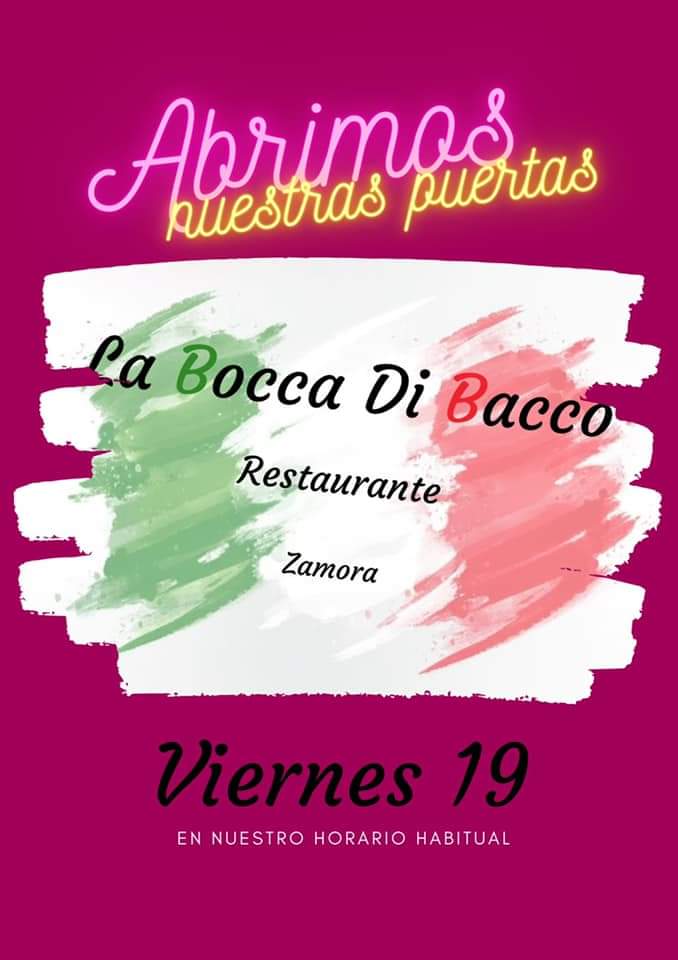 La buena cocina mediterránea regresa mañana a la capital zamorana con la reapertura del restaurante La Bocca di Bacco (calle Aire, 5). El restaurante inaugura además su nueva terraza y mantiene su servicio de comida para recoger o para entregar a domicilio, tras un paréntesis en su actividad con motivo del cierre en el interior de los locales que ha provocado la pandemia.