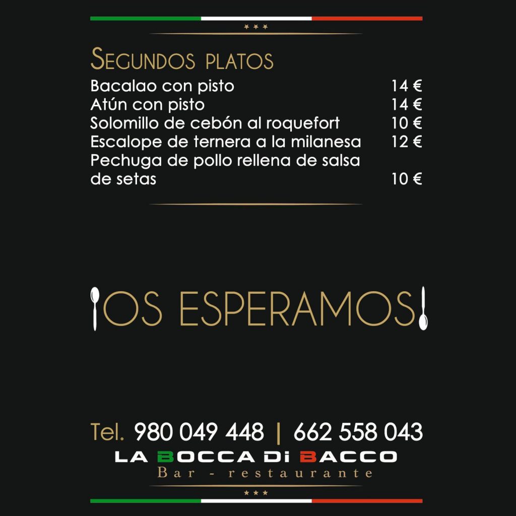 Además de su pequeña terraza, el cliente puede disfrutar de la cocina de La Bocca di Bacco en la comodidad del hogar, bien recogiendo en el propio local o con el servicio de entrega a domicilio.