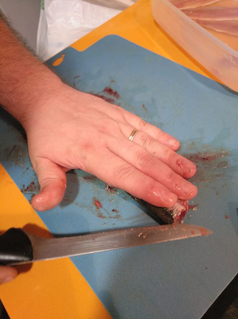 1.Limpiamos los lomos de espinas, sangre y pieles
