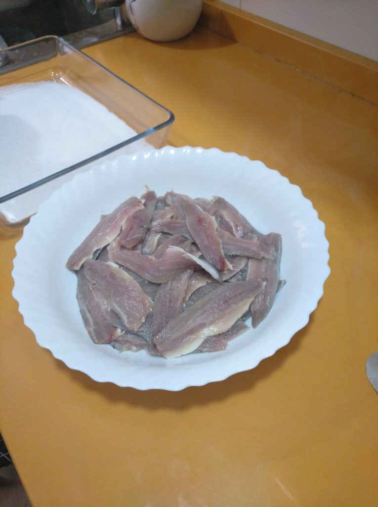 Metemos las sardinas en la nevera una hora , las lavamos y las metemos en AOVE.
