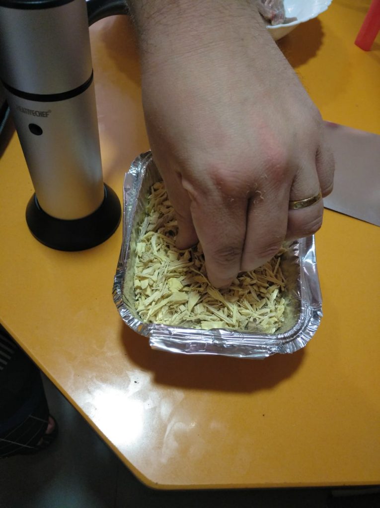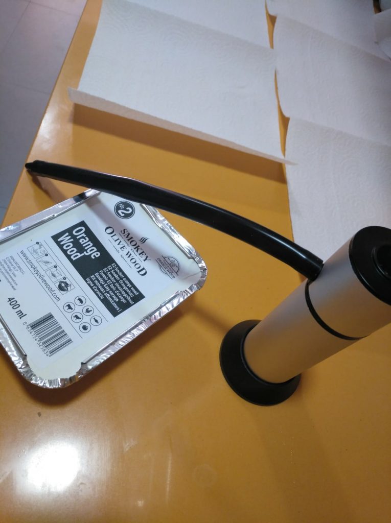 3. Secamos con papel y ahumamos con virutas de madera de Naranjo