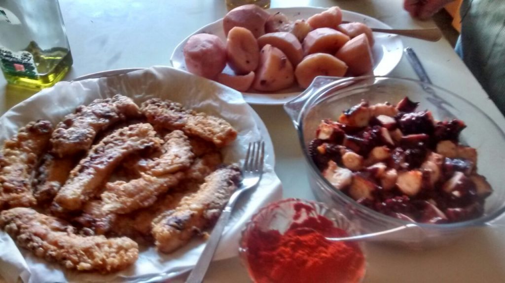 Al encontrarse en un lugar de paso obligado entre Galicia y Castilla, algunos productos de tierras gallegas se han ido asentando en la zona de Sanabria y la Carballeda y uno de ellos ha sido el pulpo que siempre ha contado con una especial aceptación entre los zamoranos. Teo ha conseguido extraer de este producto algunas creaciones que son dignas de degustar, porque además de la forma tradicional en la que el pulpo siempre se cocina “a feira” (cocido con patatas y aliñado con aceite, pimentón y sal), con el agua de la cocción del pulpo, ha conseguido hacer unos arroces que mantienen todo el sabor de la mar que transmite este cefalópodo, pero además también consigue extraer de este producto, los mejores sabores cuando lo hace a la plancha, rebozado o en ensalada.