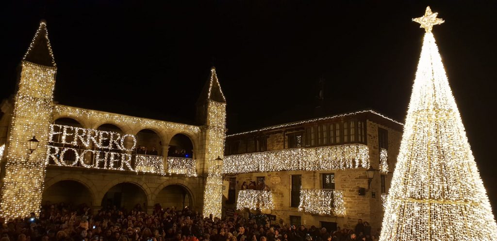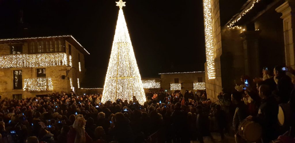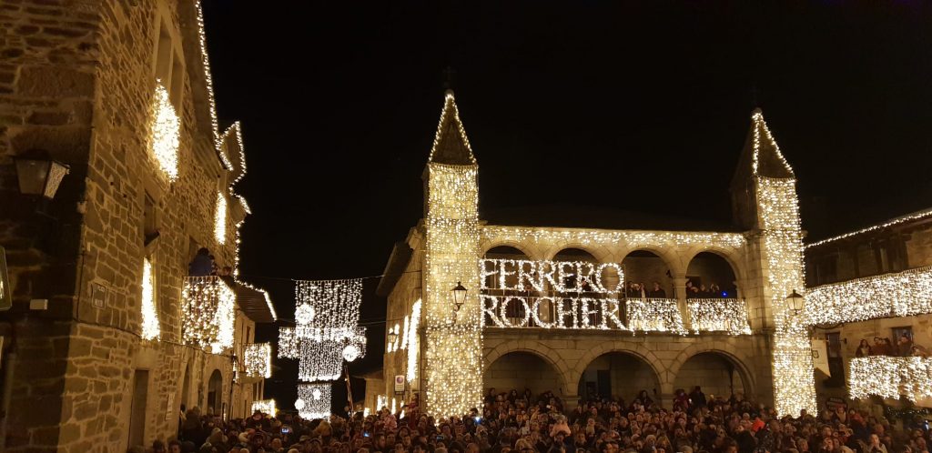 Centenares de personas se han dado cita en la villa en el encendido del alumbrado, todo un guiño a la firma Ferrero Rocher, que busca de nuevo el pueblo más bonito para la transmisión de las campanadas de Nochevieja en Tele5.