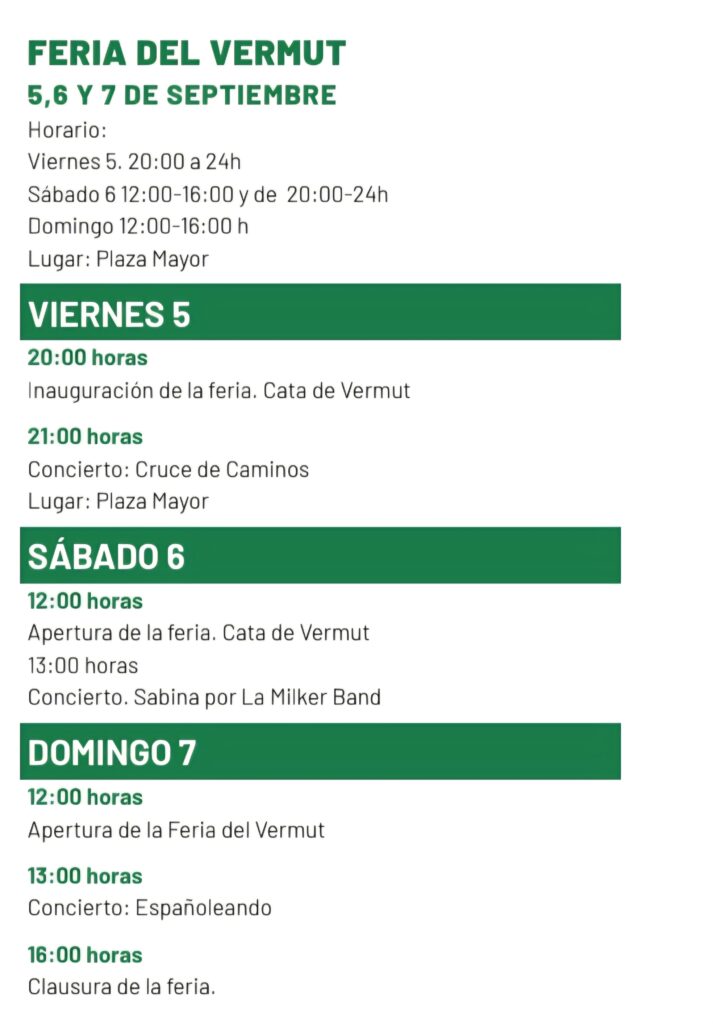 13:30 Vermú «La Sal» en Plaza Mayor.21:30 Concierto de la Banda Municipal La Lira en Plaza Mayor.