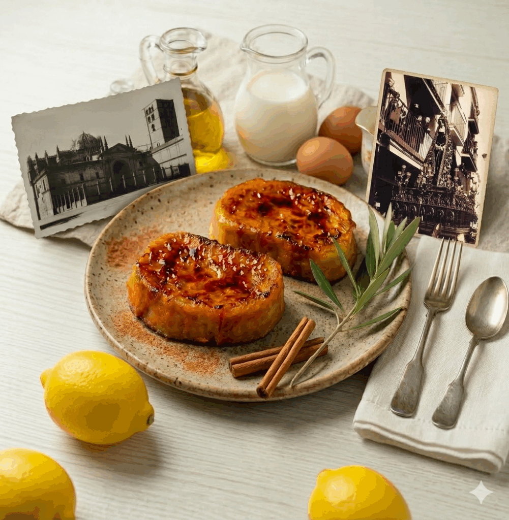 Esta variante de la tradicional torrija no se fríe en abundante aceite, sino que se carameliza lentamente en mantequilla, logrando un exterior crujiente y un interior tan tierno que se deshace en la boca, combinando la herencia de nuestras abuelas con la delicadeza de la pastelería francesa.​
