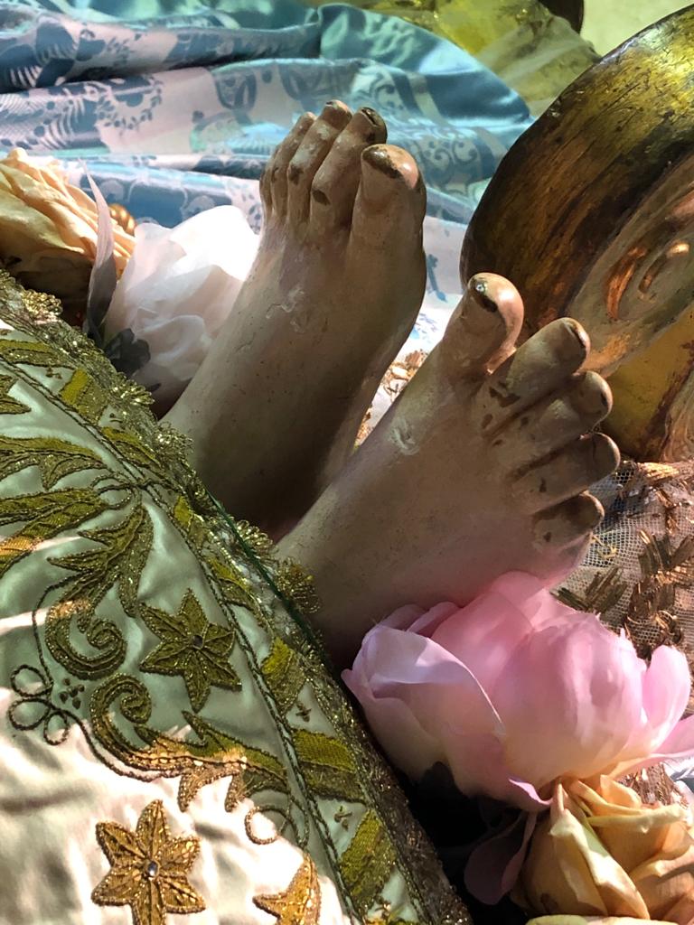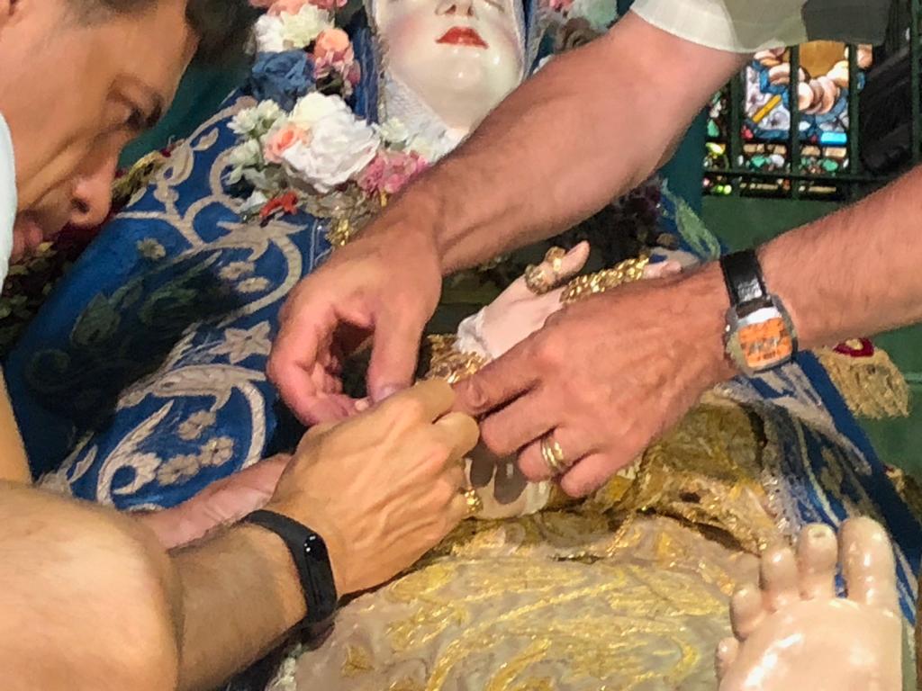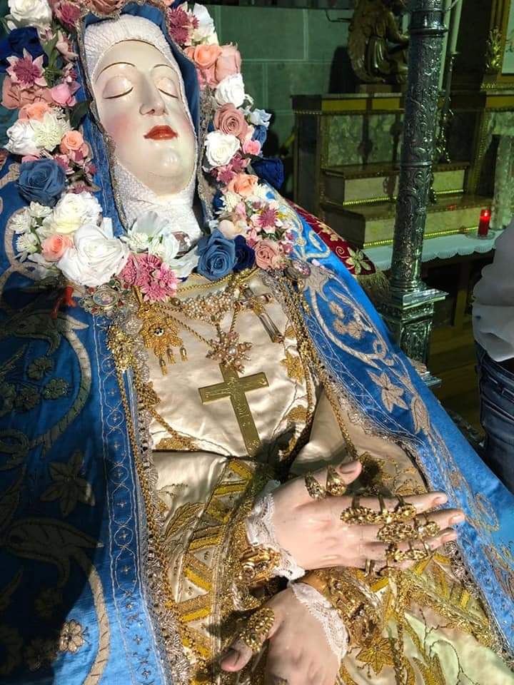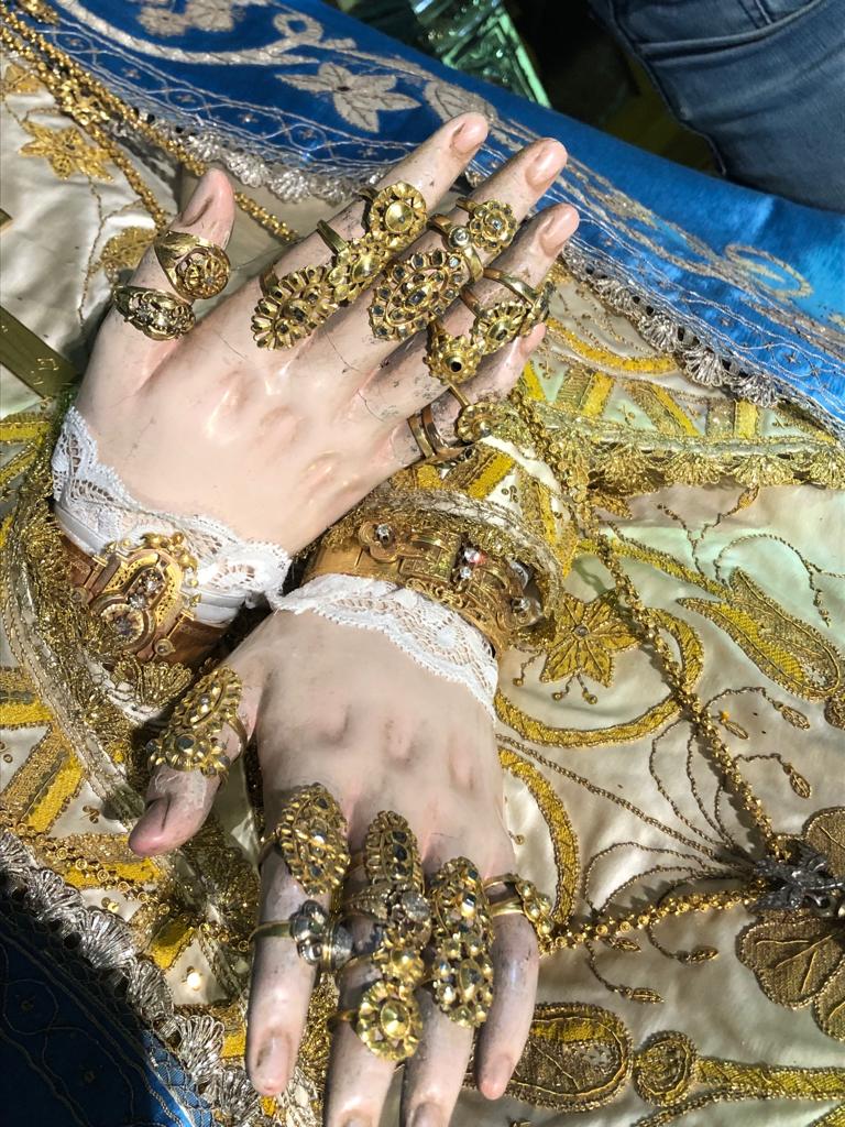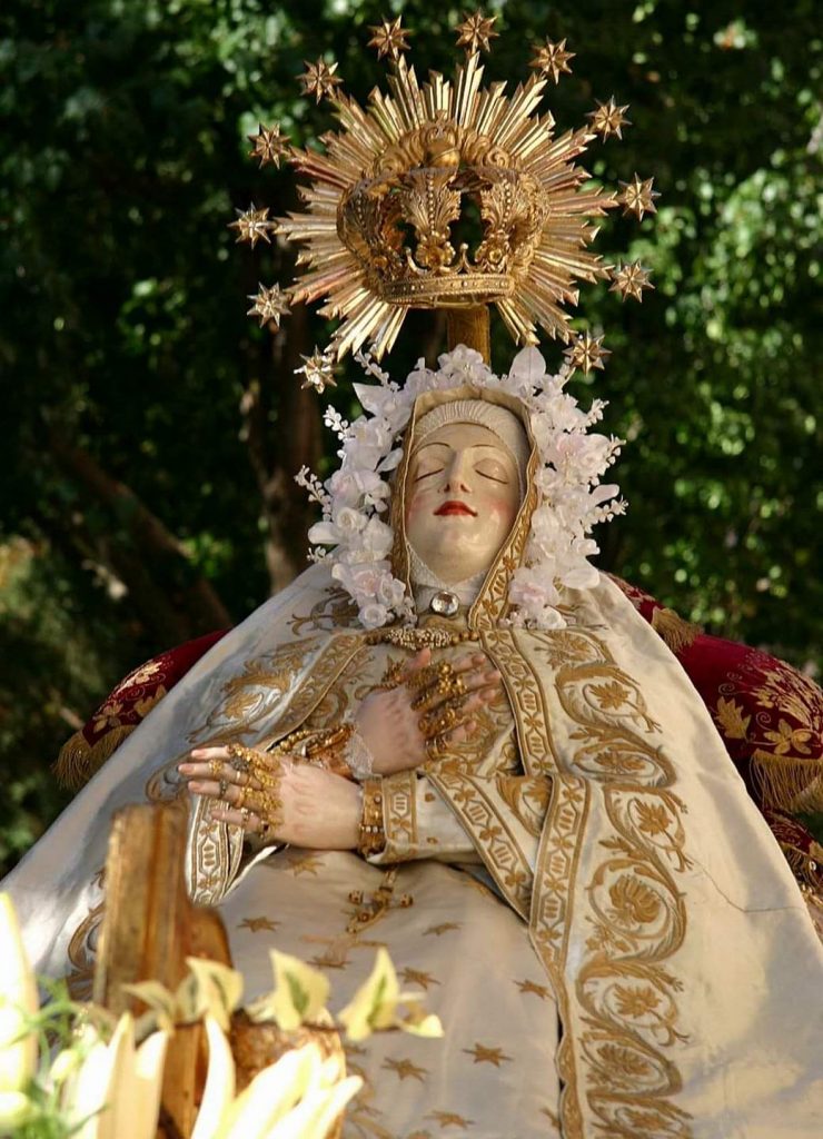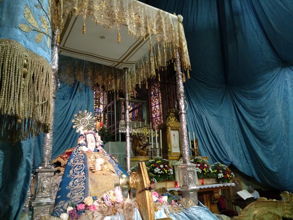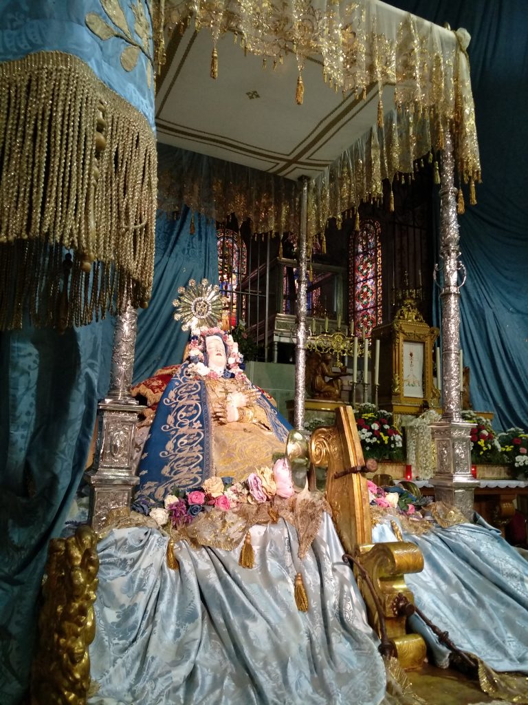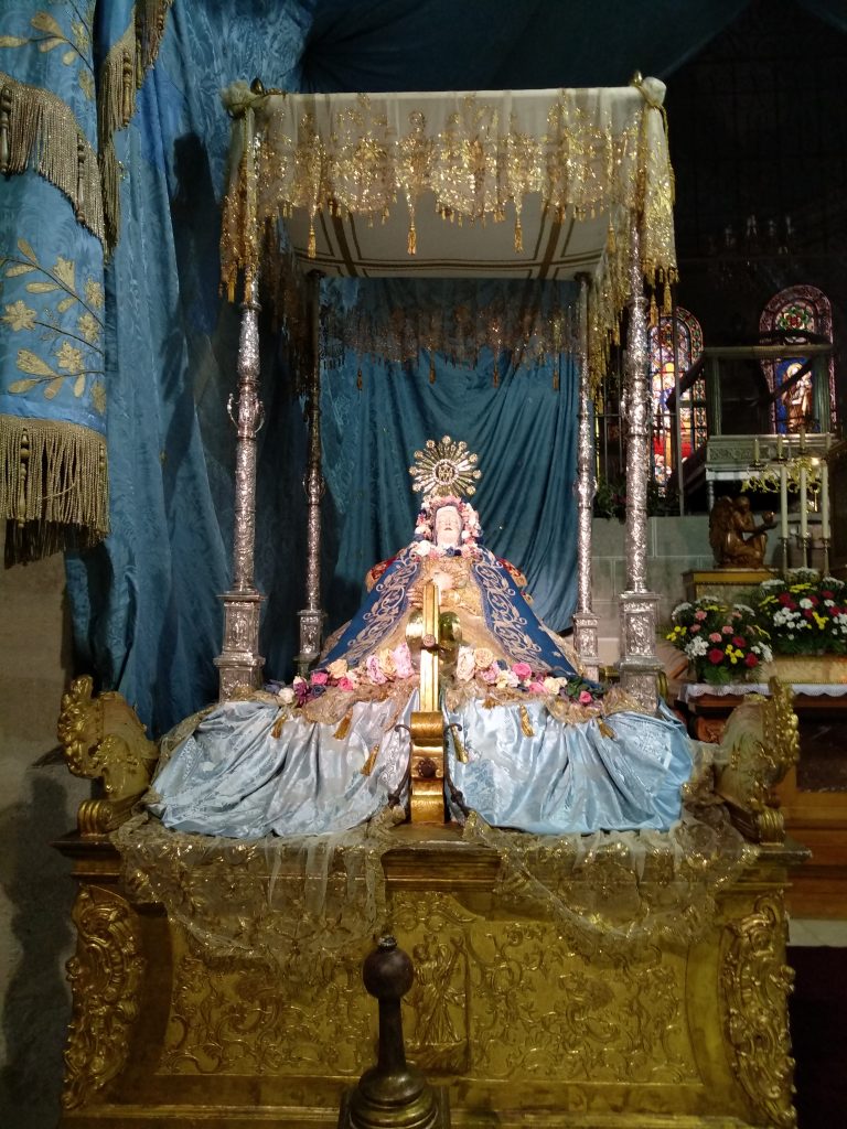 Su salida de clausura es un hecho extraordinario y las clarisas del Tránsito la custodian como su gran tesoro en el convento, engalanado en estos días de azul purísima durante los cultos.