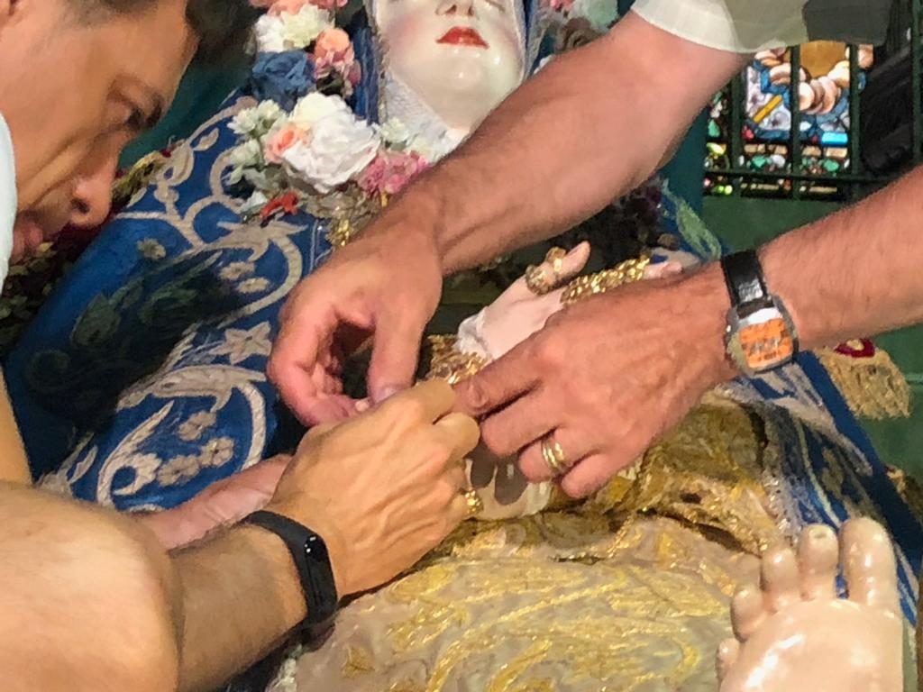 También desde hace cuatro siglos los Zamora os cubren de oro sus manos con centenares de donaciones de anillos que la adornan.